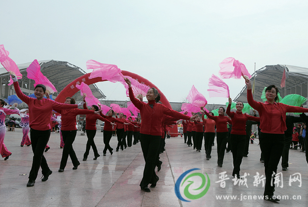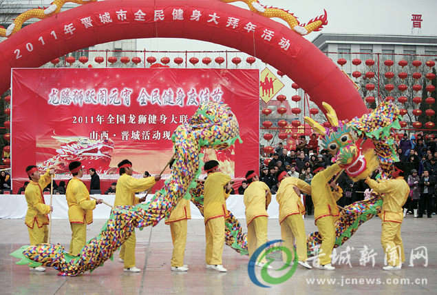 昨日上午,我市数百名健身爱好者和市民在阳电体育场欢聚一堂,共同参加“龙腾狮跃闹元宵,全民健身大拜年”——2011年全国龙狮健身大联动晋城现场的活动。这项活动也是我市今年“两节”文化活动的一项重要内容。