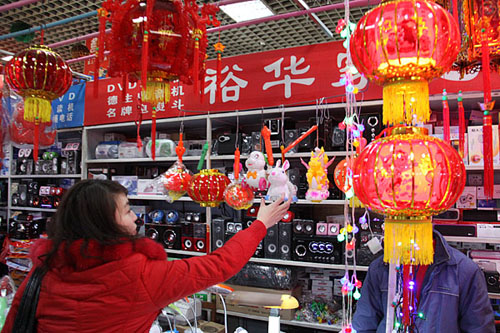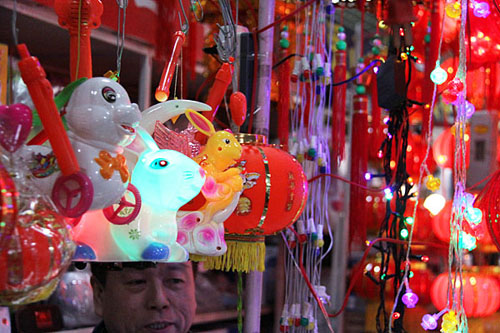 商家们紧抓商机,把兔子造型的花灯摆放在最显眼的位置。