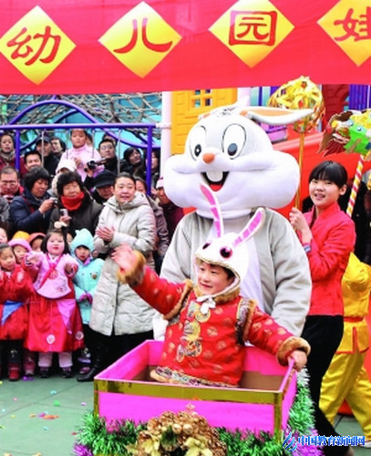 彩车巡游、跑旱船。元宵节当天,北京市东城区崇文回民幼儿园开展“我和兔年有个约会”主题活动,小朋友们用环保材料制作装饰品,学习民俗知识。(本报记者 樊世刚 摄)