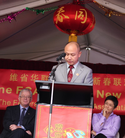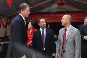2011年2月6日,墨尔本唐人街附近街道张灯结彩,锣鼓喧天,到处洋溢着喜庆的春节气氛。中国驻墨尔本总领馆代总领事黄凤文应维省华联会主席周仲民邀请出席该会举办的兔年春节庆祝开幕式活动。出席活动的还有澳大利亚吉拉德总理代表、联邦金融部长黄英贤、联邦反对党代表、影子内阁金融部长罗布、维州州长百鲁、维州反对党领袖安德鲁斯、墨尔本市市长道尔、维州多元文化部部长科茨罗斯及墨尔本市议员等嘉宾。