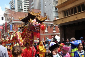 开幕式结束后,周仲民会长、黄代总、道尔市长等嘉宾还出席了大龙的游街活动。华联会春节庆祝活动持续一天时间,有舞龙、舞狮、京剧、腰鼓、武术、太极、义诊等活动及中华美食摊位,吸引到墨尔本10余万民众参与其中。总领馆陈迪、陈春梅领事陪同出席开幕式活动。