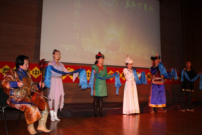 晚会上,以内蒙古民族歌舞剧院为主的艺术家们奉献了一台汇集歌舞、器乐的高水准演出,集中展示了蒙古族的草原文化与风情,包括不少国家级非物质文化遗产的独特风貌。演出在极具蒙古族风情的合唱《成吉思汗》中拉开帷幕,蒙古族长调《赞歌》犹如莽莽草原连绵伸延,绝技“呼麦”恰似滔滔江水奔流翻滚; 激昂奋进的马头琴弦奏出了万马欢腾的壮观场面,大家耳熟能详的经典歌曲《美丽的草原我的家》、《草原之夜》、《敖包相会》和二胡独奏《赛马》和《梁祝》、杂技表演《草帽》以及柔美的蒙古族舞蹈《乳香飘》更让观众为优秀的中华文化所折服。整场演出气氛热烈,高潮迭起,演员观众互动积极,尽显中华亲情。