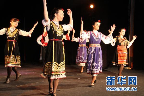 2月17日,在保加利亚索非亚摩登剧院,保加利亚青年表演民族舞。当日,由中国驻保使馆主办的中保联谊歌舞晚会在这里举行,欢庆中国传统佳节元宵节。 新华社记者谢学敏摄