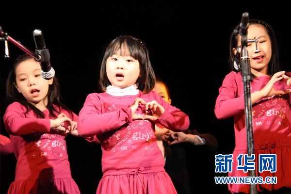 2月17日,在保加利亚索非亚摩登剧院,出生在保加利亚的华裔儿童演唱中国歌曲。当日,由中国驻保使馆主办的中保联谊歌舞晚会在这里举行,欢庆中国传统佳节元宵节。新华社记者谢学敏摄
