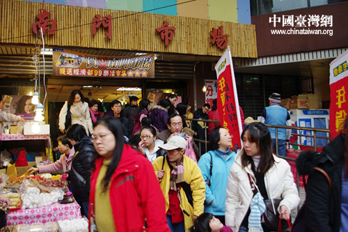中国台湾网2月1日台北消息 位于台北市中正区罗斯福路上的南门市场,是台北市一处相当重要的“菜”市场,每遇重要节日都人山人海,在农历年更是万头攒动。发展至今,南门市场几乎能找到所有的美食材料,可谓“中华美食的浓缩版市场、挑嘴老饕的浓情乐园”。