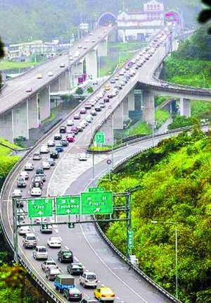 为了缓解通行压力,春节期间台湾一些热点高速路会免收过路费,而交通部门也会实施高承载措施,一辆小客车必须要坐满4人才能上高速公路,否则就要绕行其他道路。