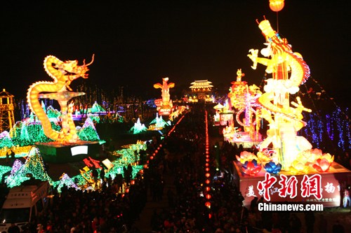29日,“神龙跃两岸,盛世共和谐”2011江苏(扬州)灯会在扬州瘦西湖畔宋夹城正式亮灯迎客,再现“火树银花不夜天”胜景。崔佳明 摄