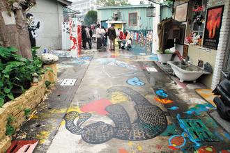 目前自助新村的彩绘创作,由五名海青工商广告科学生接手,他们每天下课后到此彩绘,期待能有佳音,“就算不幸被拆,它也活在民众的回忆里!”
