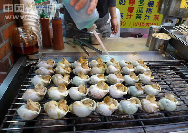 九份老街上的烤海螺