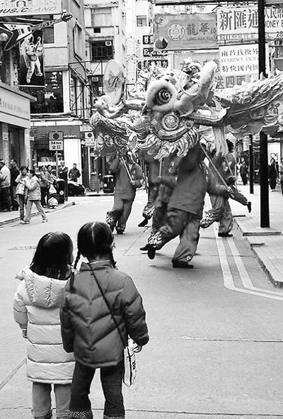 舞狮子是传统民间艺术,每逢年节庆典,都以舞狮助兴。在香港,同样如此,“春节到香港看舞狮子”甚至成了一些旅行社吸引游客的重点推介。 (资料图片)