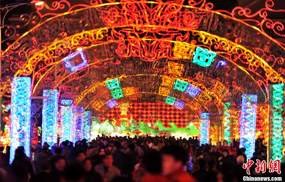 2月12日晚,第九届“两马同春闹元宵”灯会在福州马尾正式亮灯,再展马祖与马尾的“乡情、亲情、乡缘”。今年灯会首次由海峡两岸专家共同策划、设计,将马祖灯组集中布展。马祖灯组长30多米、宽约20米,集中展现马祖的风土人情。中新社记者 王东明 摄