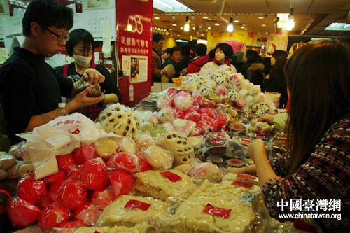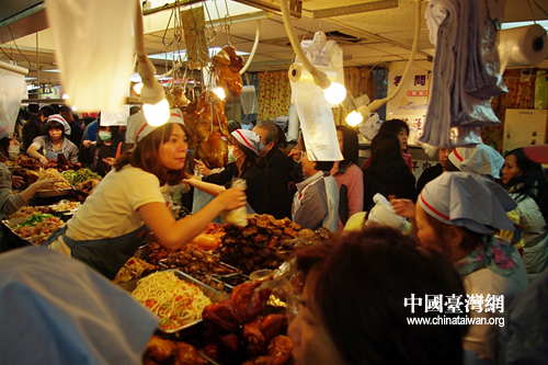 中国台湾网2月1日台北消息 位于台北市中正区罗斯福路上的南门市场,是台北市一处相当重要的“菜”市场,每遇重要节日都人山人海,在农历年更是万头攒动。发展至今,南门市场几乎能找到所有的美食材料,可谓“中华美食的浓缩版市场、挑嘴老饕的浓情乐园”。