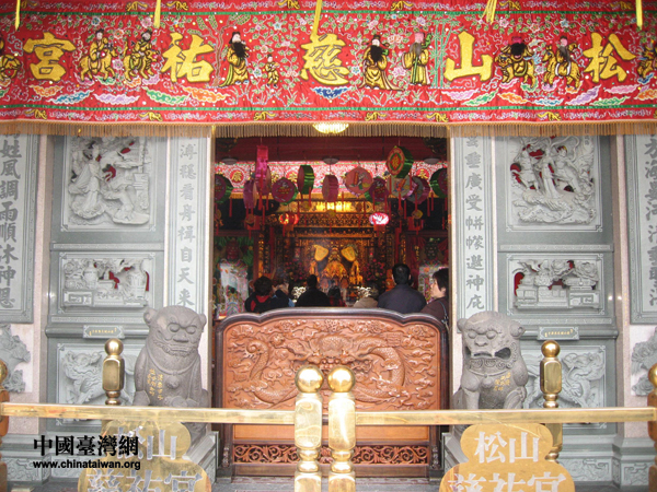 松山慈佑宫大殿门口,里面经常人潮汹涌。