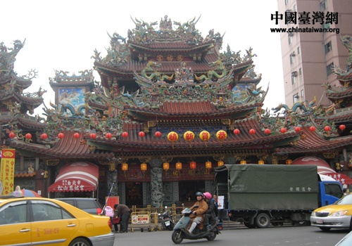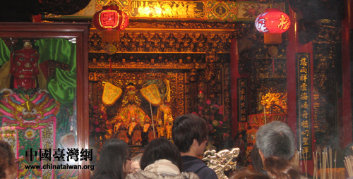 中国台湾网2月2日台北消息 台湾人过年必做的事情之一,就是到庙里拜拜祈福,一方面感谢过去一年的平安,一方面祈祷来年的顺利;位于台北松山区的慈佑宫,就是这样一个台北人过年拜拜的好去处,一家老小、善男信女,都会前来焚香暗祷、抽签问讯,还有点光明灯、安太岁等活动。