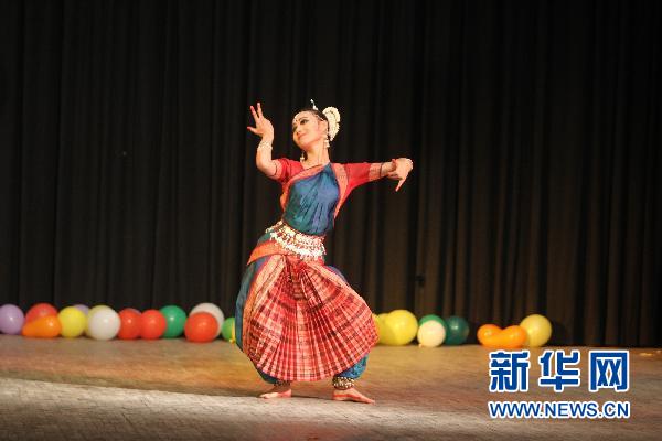 1月29日,在印度首都新德里举办的“2011相聚在印度”春节联欢会上,中国留学生李纤纤表演印度舞蹈。 新华社记者李毅刚摄