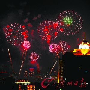广州地区收看焰火晚会的电视观众超过200万人。