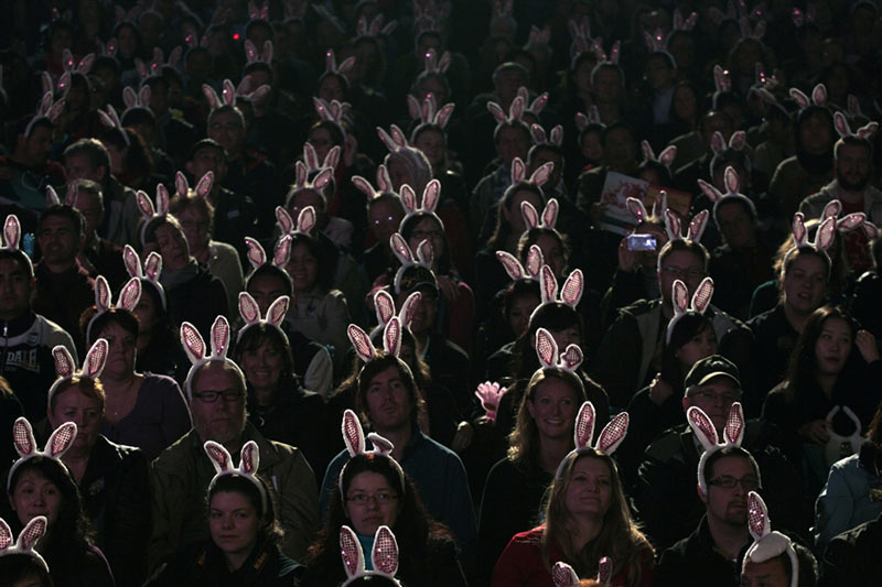2011年1月,10余名南京艺术学院学生在南京玄武湖公园的地面上创作了许多以兔子为主题的三维立体画,迎接兔年春节的到来。1月30日,游人在南京玄武湖公园一幅三维立体画旁拍照留念。