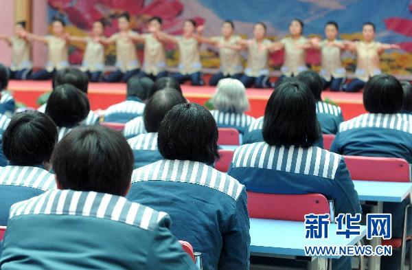 2月17日,在参加“月圆人圆”亲情帮教会上,服刑人员们在观看情景舞蹈《在妈妈怀抱里》。当日,是农历正月十五元宵节,在这个万家团聚的日子里,大墙之内也正演绎着一种别样的悲欢离合——河南省郑州女子监狱的29名服刑人员,和毗邻的豫中监狱有着亲属关系的服刑人员,相聚在两座监狱共同举办的 “月圆人圆”亲情帮教会上,共度元宵佳节。 新华社记者王颂摄