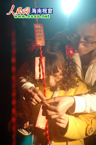 在海瑞故居的两棵榕树下,市民许愿祈福活动更是热闹,市民纷纷把新年愿望写在卡片上,系上红绳绑在榕树下,祈求新的一年平安吉祥、顺顺利利。此外,当晚的红城湖庙会也人潮涌动、热闹非凡,灯展、游园、卡拉OK、木偶戏、传统小吃、琼剧票友演唱会等让市民们兴致浓浓。