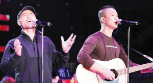 2. 阿尔发和世博小男孩裴仁萱与网民代表共唱《大中国》
