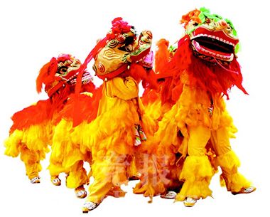 过去北京不允许舞龙,因为龙代表皇权,只能宫廷中太监舞给皇帝玩,事先必须有特赦才可进行。宫中舞的是“火龙”,龙体透明,内置点燃的油灯,在黄昏或夜晚时进行,蔚为壮观。舞狮在北京比较普遍,但北京舞狮不像南狮,没有过多的杂技技巧,主要讲究威武庄严。初期很简单,是一块布,狮头用泥巴或纸浆做成,非常丑陋,几乎全是秃的。而南狮相对精细,但造型更像猫,没有狮子的威风。