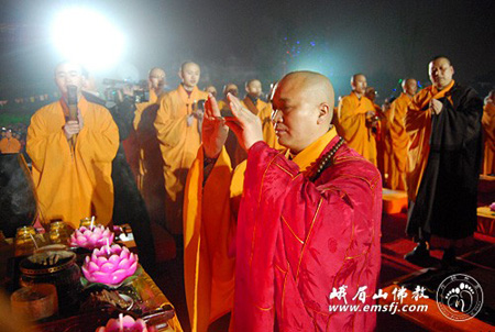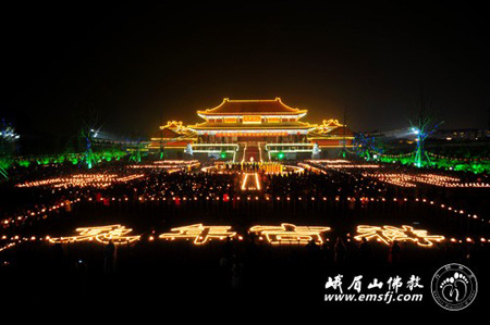 佛教在线四川讯 2011年2月16日(农历正月十四)晚,由峨眉山佛教协会主办的“万盏明灯供普贤”大型祈福供灯法会在峨眉山大佛禅院前山门广场隆重举行,当天法师、居士、游人、市民近万人参加了法会。法会礼请中国佛教协会副会长、四川省佛教协会会长、峨眉山佛教协会会长永寿法师主法。