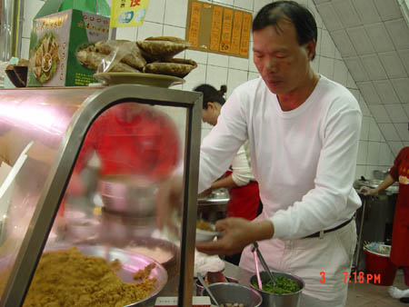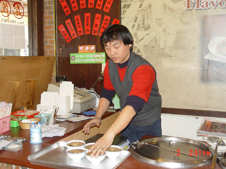 台南的米糕就是闻名全台湾的特产小吃,它有两种类型,一是以竹筒为容器蒸熟的糯米饭,叫“筒仔米糕”;二是以普通瓦锅煮熟的糯米饭,吃的时候加了调味料,这种也叫--米糕。我在台南的时候,台南观光协会也推荐我去采访当地一家小有名气的米糕店——小南竹叶米糕店,老板黄庆珍先生人也非常热情,他告诉我,不久前,还有朋友邀请他去上海的台商小吃夜市发展他的小南米糕,因为考虑到他目前还处于在岛内布局连锁加盟店的发展阶段,其实去大陆的事情,他还在研讨中。不过,对于大陆来的朋友,他也非常友善、好客,端了一大碗的米糕,浇上肉燥、鱼松,及三、四片腌黄瓜,吃来也是十分可口。