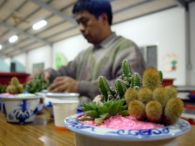 (图/老板示范仙人掌盆栽DIY。)
