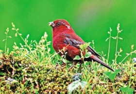 酒红朱雀冬天常在中海拔出现觅食。黄文欣/摄影