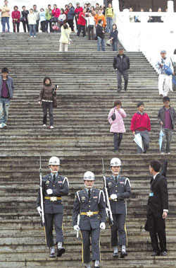 台北中正纪念堂的军仪队也是游客焦点所在。