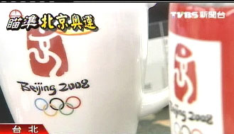 印有福娃图案的雨伞(图:台湾TVBS)  有北京奥运图案的杯子(图:台湾TVBS)