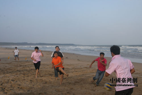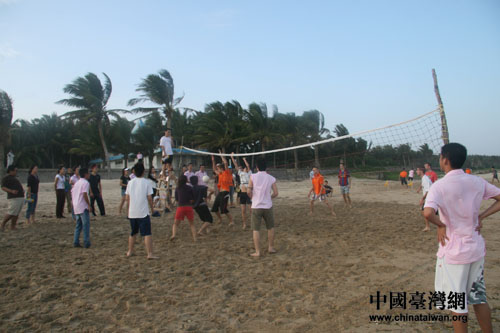 在博鳌的沙滩上,两岸学生展开各种对抗游戏