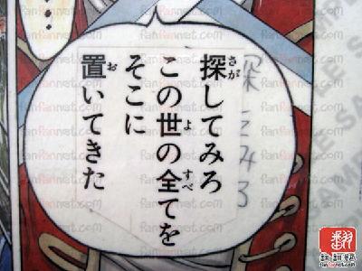 另外在右侧还印有少年JUMP的原稿印章,并且有也许是尾田本人也许是初代担当留下的关于贴字的要求——“黑色对话框上的台词都反白后贴字”。