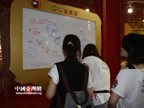 漫迷们在阅悦题板上涂鸦(中国台湾网 李丹 摄)
