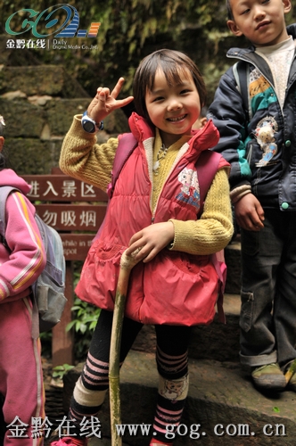 乖巧的小魏燕告诉记者,她的家就住在佛光岩景区后面的元厚镇白杨坪村,村子里一共有六个上小学的孩子,每天他们都会结伴而行,穿过五柱峰景区,往返于家和学校之间。