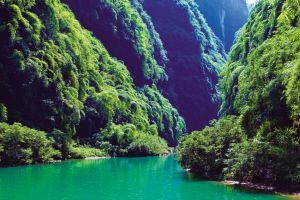 江中碧水奔流,两岸绿荫连绵,集“剑门之雄,三峡之壮,峨眉之秀”于一江,堪称乌江画廊最精彩处。诗人孟郊赞誉:“旧说天下山,半在黔中青。又闻天下泉,半落黔中鸣。山水千万绕,中有君子行。”难怪诗人翁若梅要惊呼:“蜀中山水奇,应推此第一”!