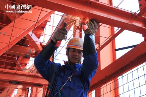 工人在为大桥做维护(中国台湾网 杨永青 摄)