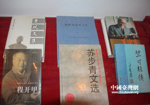 陈列馆中竺可桢、苏步青、程开甲等的书籍(中国台湾网 李丹 摄)