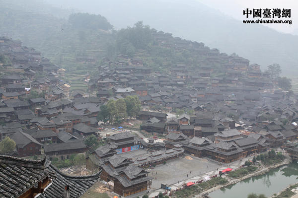 从观景台上俯瞰苗寨,尤感气势磅礴(中国台湾网 杨永青 摄)