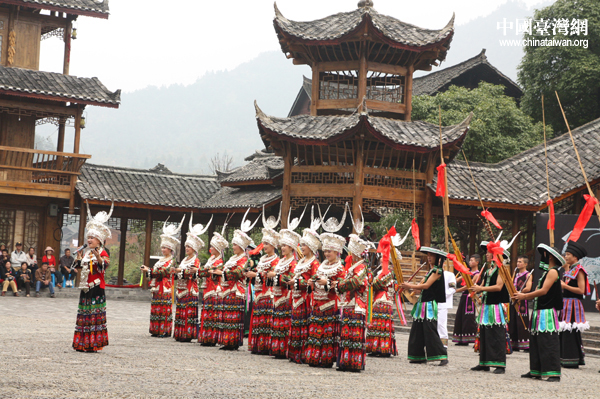 中国台湾网10月17日贵州西江消息 饱览苗寨建筑风格,欣赏大型民族歌舞剧——《情满西江》,对山歌,买银饰,吃长桌席,全国40家网络媒体今日在黔东南西江千户苗寨恋恋采访中。请大家跟随本网记者的镜头慢慢领略苗族文化的原版史书。(记者 杨永青)