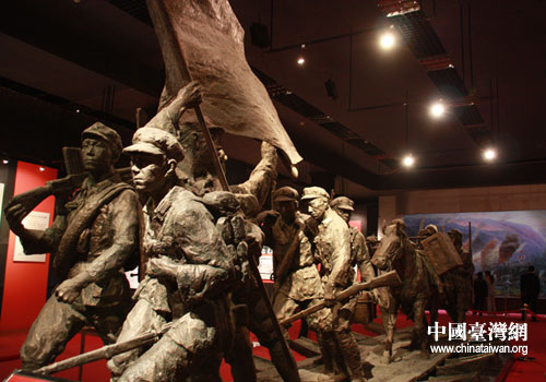 遵义会议陈列馆中红军宣传员雕像(中国台湾网 李丹 摄)