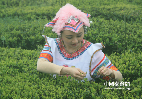 勤劳美丽的采茶姑娘,纤手与茶枝舞蹈。(中国台湾网 李丹 摄)