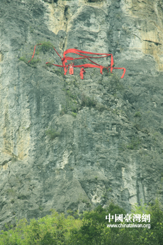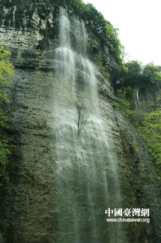 中国台湾网4月12日遵义消息 青峰如屏倒影江中,景色奇幻多姿多彩。中国网络媒体贵州行“红色之旅”一行昨日上午来到遵义云门囤景区,观赏原生态奇观,放飞心情,回归自然,体会云门囤沉静质朴、雄奇秀丽的天然之美。