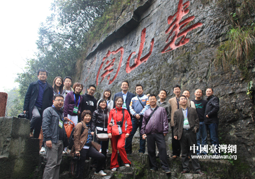 网络媒体记者在娄山关石刻前合影留念(中国台湾网 李丹 摄)