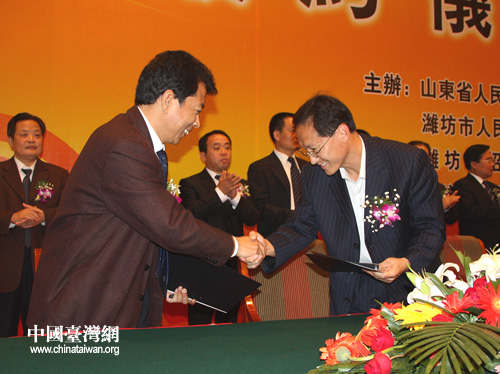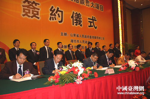中国台湾网9月27日潍坊消息 “第十四届鲁台经贸洽谈会大项目签约仪式”于昨天下午在潍坊举行。山东省有关部门、潍坊市政府负责人及签约项目双方代表参加仪式。