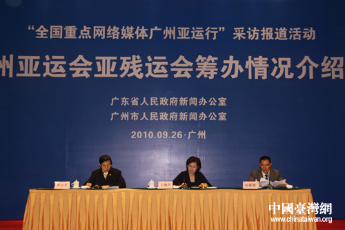中国台湾网9月26日广州消息 26日下午,在距广州亚运会开幕47天之际,广州亚运会亚残运会筹办情况介绍会在广州召开。中国台湾网、人民网、新华网等中央重点新闻网站和各省市重点新闻网站共50余家媒体参加了本次情况介绍会。