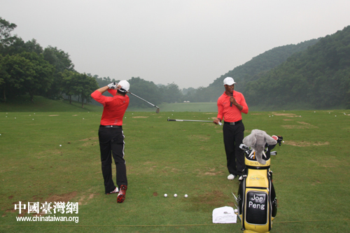 高尔夫教练为记者们做现场演示(中国台湾网 赵辉 摄)