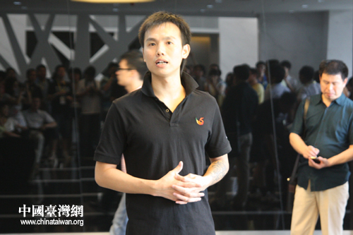 雨林木风总经理赖霖枫向记者们介绍企业情况(中国台湾网 赵辉 摄)