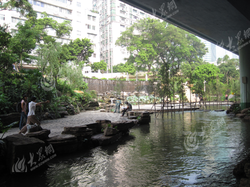 如今的东濠涌水质清澈,居民在水边打太极、读书