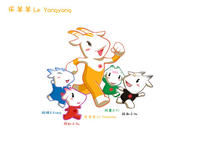 广州亚运会吉祥物取名乐羊羊,形象是运动时尚的五只羊,分别取名“阿祥”、“阿和”、“阿如”、“阿意”、“乐羊羊”,组成“祥和如意乐洋洋”,表达了广州亚运会将给亚洲人民带来“吉祥、和谐、幸福、圆满和快乐”的美好祝愿,也同时传达了运动会“和谐、激情”的理念。和2008年北京奥运会一样,这次的亚运会的吉祥物也是五个,打破了亚运会的吉祥物的个数之最。 。